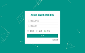 思(si)沃(wo)電商直(zhi)(zhi)(zhi)播(bo)實(shi)戰(zhan)平臺分為管理員、教師(shi)和學生三(san)種角(jiao)色,以(yi)直(zhi)(zhi)(zhi)播(bo)選品(pin)、直(zhi)(zhi)(zhi)播(bo)策劃、直(zhi)(zhi)(zhi)播(bo)運營實(shi)戰(zhan)、直(zhi)(zhi)(zhi)播(bo)復盤、數據分析為核心,具(ju)體功能如下:
