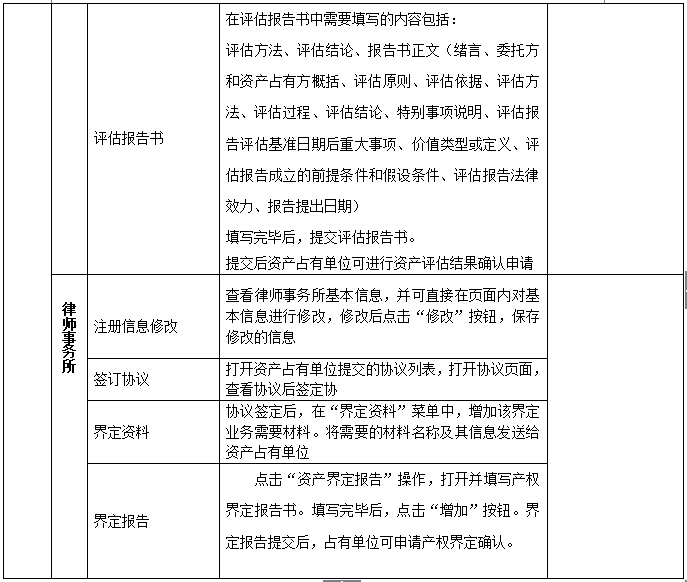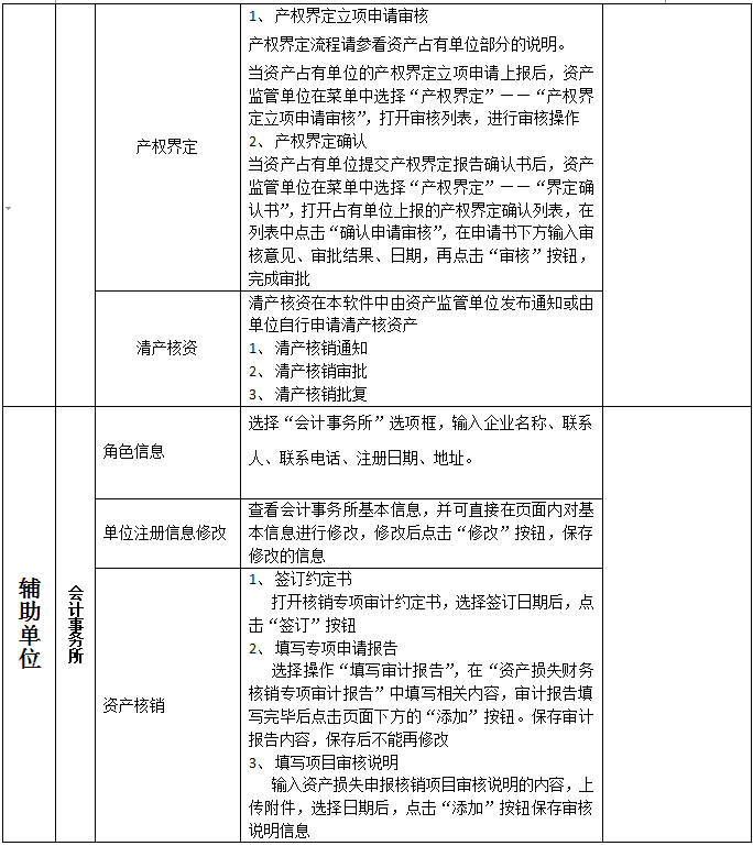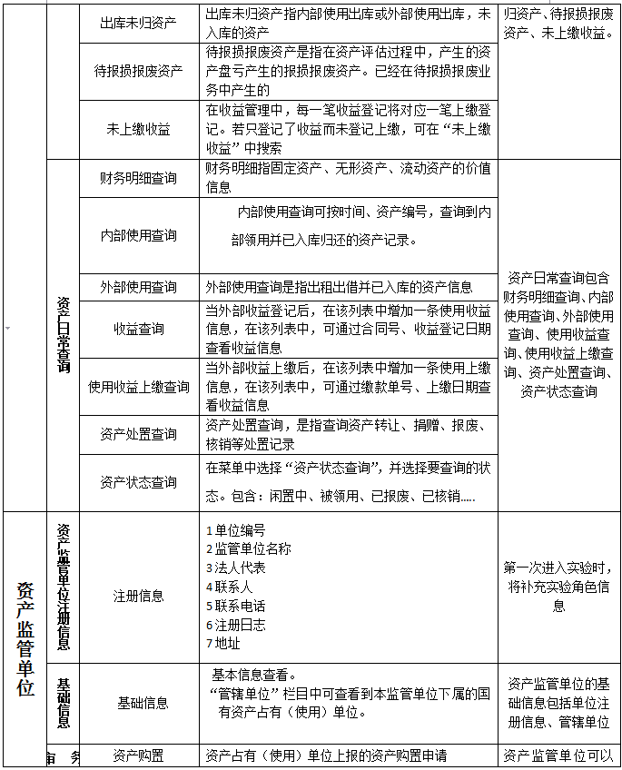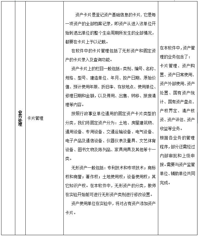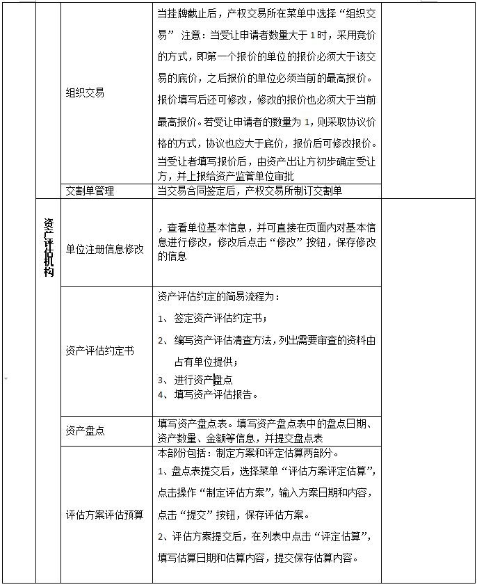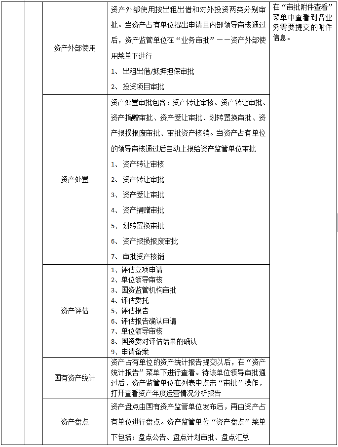 1、 主要業(ye)務(wu)(wu)(wu)包(bao)含:國(guo)有資(zi)(zi)(zi)(zi)產(chan)(chan)(chan)(chan)卡片(pian)管(guan)(guan)(guan)理(li)(li);資(zi)(zi)(zi)(zi)產(chan)(chan)(chan)(chan)購置及(ji)審批(pi); 2、 國(guo)有資(zi)(zi)(zi)(zi)產(chan)(chan)(chan)(chan)領(ling)用、入庫(ku)、變動及(ji)審批(pi);資(zi)(zi)(zi)(zi)產(chan)(chan)(chan)(chan)出(chu)租(zu)出(chu)借、擔保抵押、對外投資(zi)(zi)(zi)(zi)及(ji)審批(pi); 3、 國(guo)有資(zi)(zi)(zi)(zi)產(chan)(chan)(chan)(chan)轉(zhuan)讓(rang)、捐(juan)贈(zeng)、劃轉(zhuan)、置換、報廢報損(sun)與核銷(xiao)及(ji)審批(pi)。 4、在業(ye)務(wu)(wu)(wu)流(liu)(liu)程(cheng)(cheng)中,由包(bao)含著資(zi)(zi)(zi)(zi)產(chan)(chan)(chan)(chan)盤點;資(zi)(zi)(zi)(zi)產(chan)(chan)(chan)(chan)統計;產(chan)(chan)(chan)(chan)權(quan)登記及(ji)變更、年檢;產(chan)(chan)(chan)(chan)權(quan)界(jie)定;清產(chan)(chan)(chan)(chan)核資(zi)(zi)(zi)(zi);資(zi)(zi)(zi)(zi)產(chan)(chan)(chan)(chan)評(ping)估;資(zi)(zi)(zi)(zi)產(chan)(chan)(chan)(chan)收益管(guan)(guan)(guan)理(li)(li)等。 5、本軟(ruan)件嚴格按(an)照資(zi)(zi)(zi)(zi)產(chan)(chan)(chan)(chan)管(guan)(guan)(guan)理(li)(li)流(liu)(liu)程(cheng)(cheng),通過資(zi)(zi)(zi)(zi)產(chan)(chan)(chan)(chan)管(guan)(guan)(guan)理(li)(li)員、單(dan)(dan)位(wei)(wei)領(ling)導、上級管(guan)(guan)(guan)理(li)(li)部門(men)、資(zi)(zi)(zi)(zi)產(chan)(chan)(chan)(chan)監管(guan)(guan)(guan)部門(men)層層審核和(he)審批(pi)來完成(cheng)業(ye)務(wu)(wu)(wu)流(liu)(liu)程(cheng)(cheng)。 6、輔助單(dan)(dan)位(wei)(wei)包(bao)含:產(chan)(chan)(chan)(chan)權(quan)交(jiao)(jiao)易(yi)所、國(guo)有資(zi)(zi)(zi)(zi)產(chan)(chan)(chan)(chan)界(jie)定中介單(dan)(dan)位(wei)(wei)(律師事(shi)務(wu)(wu)(wu)所);資(zi)(zi)(zi)(zi)產(chan)(chan)(chan)(chan)評(ping)估機構(gou)、會計事(shi)務(wu)(wu)(wu)所四種角色。 國(guo)有資(zi)(zi)(zi)(zi)產(chan)(chan)(chan)(chan)交(jiao)(jiao)易(yi)流(liu)(liu)程(cheng)(cheng)