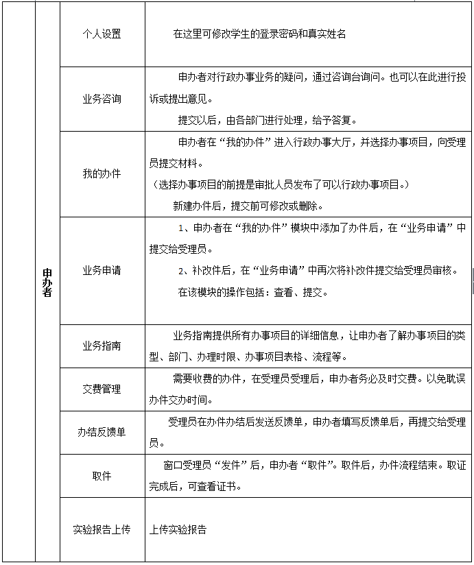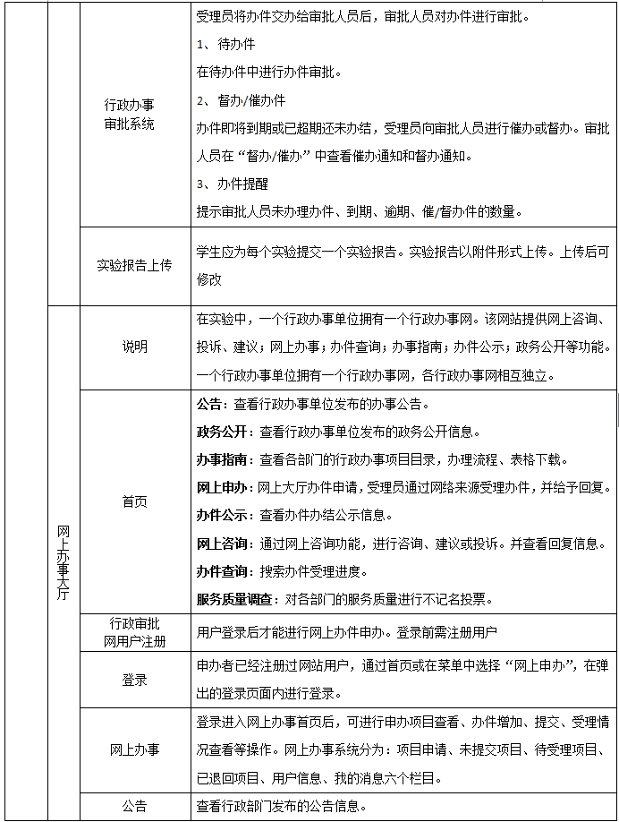 8、學生在(zai)實驗中分別扮演申(shen)辦(ban)者、行(xing)政(zheng)部門受理員(yuan)、行(xing)政(zheng)審批員(yuan)。申(shen)辦(ban)者可以通過行(xing)政(zheng)辦(ban)事(shi)大廳或網上辦(ban)事(shi)大廳提交辦(ban)件申(shen)請材料。