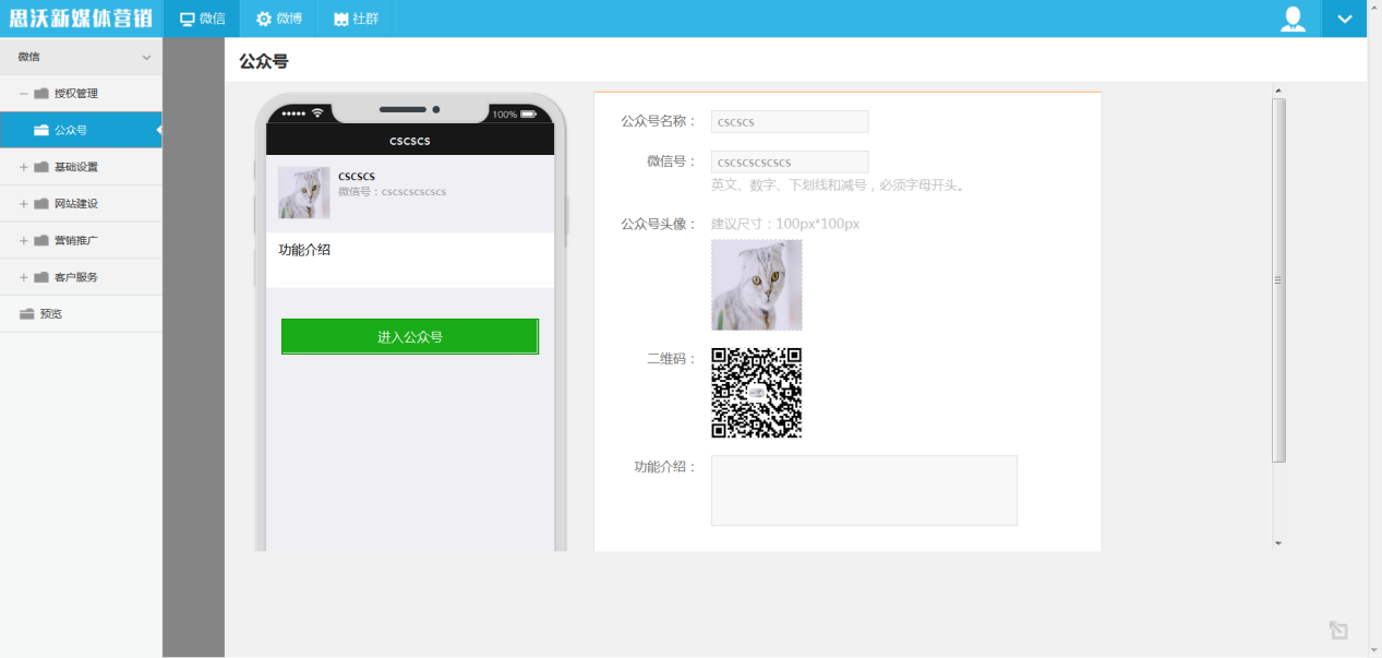 思沃新(xin)媒體(ti)營(ying)銷模擬(ni)實(shi)訓平臺(tai)系統(tong)模擬(ni)了真(zhen)實(shi)的新(xin)媒體(ti)營(ying)銷環境(jing),提供(gong)包括:微信營(ying)銷、微博(bo)營(ying)銷和社(she)群營(ying)銷,用戶根據該教學軟件系統(tong)提供(gong)的營(ying)銷模塊進行營(ying)銷操作(zuo),新(xin)媒體(ti)營(ying)銷主要以微信公眾(zhong)號,微博(bo),社(she)群這三種(zhong)營(ying)銷模式為(wei)主進行實(shi)訓。