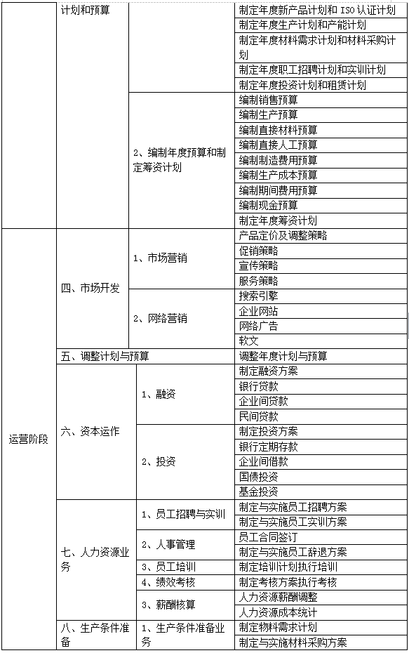 跨專業(ye)(ye)(ye)(ye)平(ping)臺主要由搭建平(ping)臺運行(xing)(xing)環境(jing)、制(zhi)(zhi)造(zao)(zao)(zao)企(qi)業(ye)(ye)(ye)(ye)運營、行(xing)(xing)政(zheng)業(ye)(ye)(ye)(ye)務(wu)(wu)和金融業(ye)(ye)(ye)(ye)務(wu)(wu)等幾(ji)大部(bu)(bu)分組成(cheng)。以(yi)現(xian)代制(zhi)(zhi)造(zao)(zao)(zao)行(xing)(xing)業(ye)(ye)(ye)(ye)為藍本,設置(zhi)總經理辦(ban)公室、銷(xiao)售部(bu)(bu)、生產部(bu)(bu)、采購部(bu)(bu)、倉(cang)儲部(bu)(bu)、外貿部(bu)(bu)、市場(chang)部(bu)(bu)、財務(wu)(wu)部(bu)(bu)、人(ren)才資(zi)源(yuan)部(bu)(bu)、企(qi)業(ye)(ye)(ye)(ye)投資(zi)融部(bu)(bu)等十大制(zhi)(zhi)造(zao)(zao)(zao)企(qi)業(ye)(ye)(ye)(ye)職能部(bu)(bu)門;真實模擬(ni)行(xing)(xing)政(zheng)辦(ban)事(shi)部(bu)(bu)門,提(ti)供(gong)工商(shang)局(ju)、稅務(wu)(wu)局(ju)、會計事(shi)務(wu)(wu)所(suo)、銀行(xing)(xing)、物(wu)流(liu)、保(bao)險公司(si)、貸(dai)代公司(si)等辦(ban)事(shi)場(chang)所(suo);系統虛擬(ni)扮(ban)演(yan)公安局(ju)、質(zhi)量與(yu)技(ji)術(shu)監督局(ju)、勞(lao)動(dong)與(yu)社會保(bao)障局(ju)、原(yuan)材料供(gong)應商(shang)、海關(guan)(guan)、商(shang)檢(jian)、外匯管理局(ju)、船公司(si)等服務(wu)(wu)性(xing)部(bu)(bu)門行(xing)(xing)業(ye)(ye)(ye)(ye)。攘(rang)括了與(yu)制(zhi)(zhi)造(zao)(zao)(zao)行(xing)(xing)業(ye)(ye)(ye)(ye)有(you)關(guan)(guan)的所(suo)有(you)相關(guan)(guan)行(xing)(xing)政(zheng)辦(ban)事(shi)部(bu)(bu)門和服務(wu)(wu)性(xing)行(xing)(xing)業(ye)(ye)(ye)(ye)。